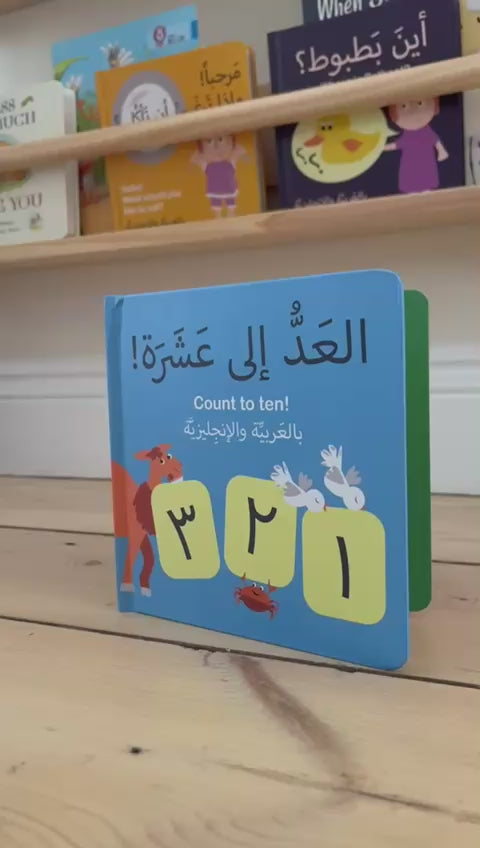 Introduce your little ones to the joy of counting with "Count to Ten!" This delightful bilingual book offers an engaging way for toddlers to learn numbers in both English and Arabic. Featuring vibrant illustrations of friendly animals, each page presents a number alongside its corresponding Arabic and English pronunciation, making it easy for young readers to follow along.